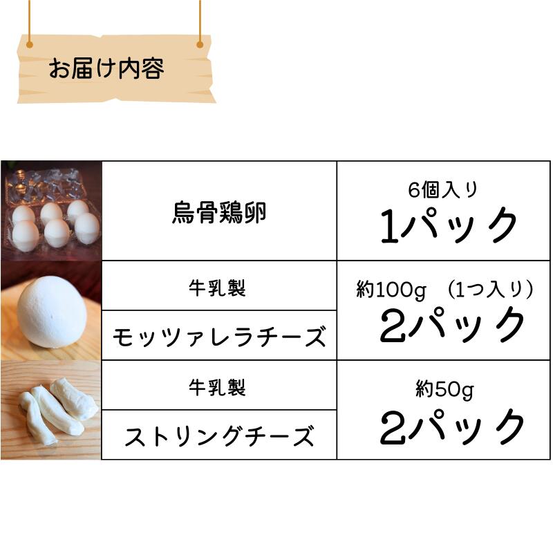 - 【ふるさと納税】【11月〜3月限定・牛乳】平飼い烏骨鶏卵 6個 モッツァレラチーズ 100g×2 ストリングチーズ 50g×2