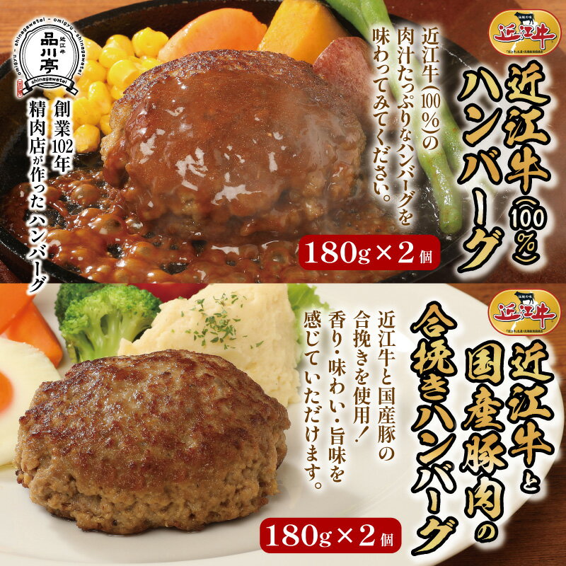 【ふるさと納税】近江牛ハンバーグと近江牛と国産豚肉の合挽ハンバーグ詰合わせ 各180g×2個 合計4個 品川亭 [ST005] | 近江牛 ハンバーグ 牛肉 肉 惣菜 おかず 惣菜 セット 詰め合わせ 送料無料 お弁当 冷凍食品