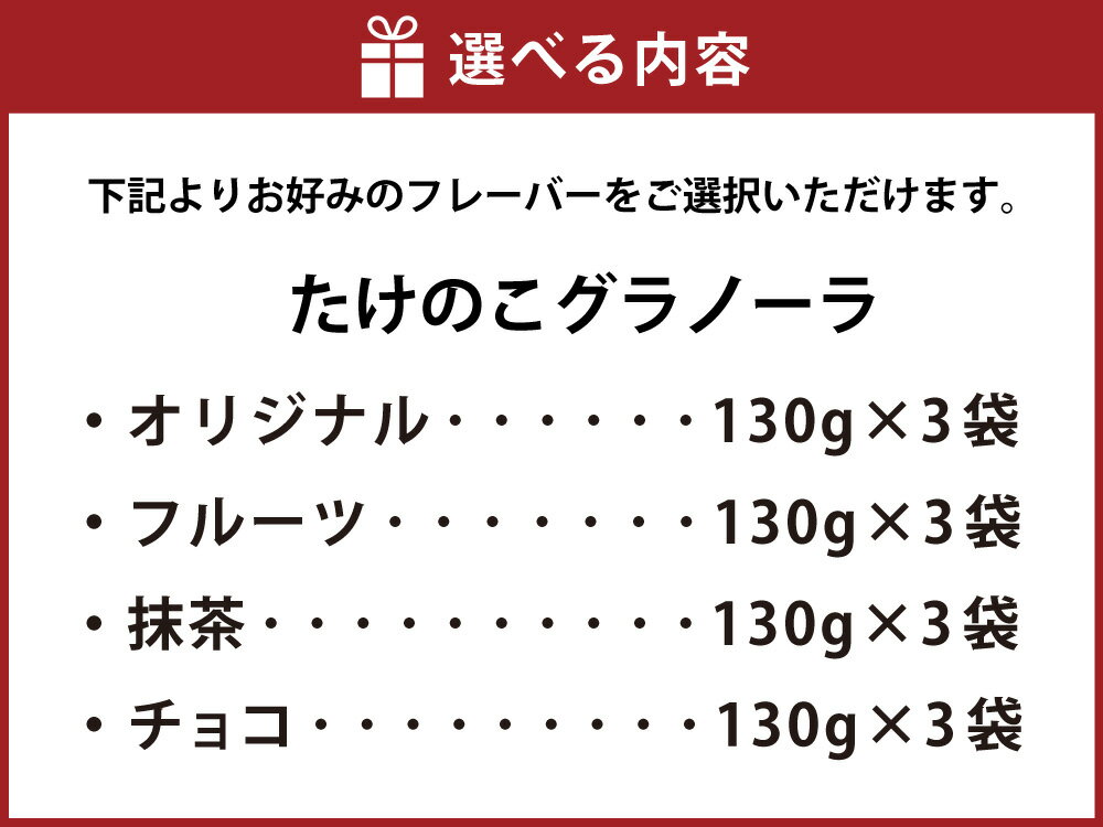 - 【ふるさと納税】<選べる種類>たけのこグラノーラ 計390g(130g×3袋) オリジナル・フルーツ・抹茶・チョコ オーツ麦 オートミール 無添加 朝食 健康 食物繊維 牛乳 ヨーグルト アイスクリーム 三重県産 国産 三重県 桑名市 送料無料 059-0050