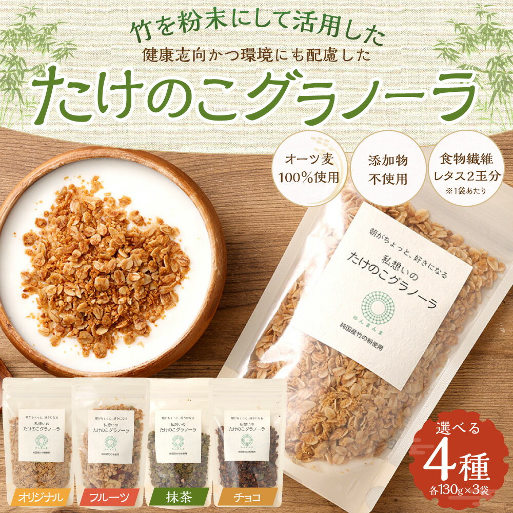 【ふるさと納税】<選べる種類>たけのこグラノーラ 計390g(130g×3袋) オリジナル・フルーツ・抹茶・チョコ オーツ麦 オートミール 無添加 朝食 健康 食物繊維 牛乳 ヨーグルト アイスクリーム 三重県産 国産 三重県 桑名市 送料無料 059-0050