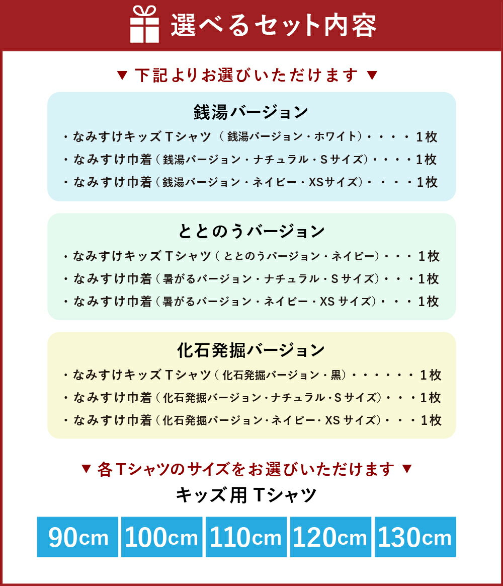【ふるさと納税】<選べる種類>なみすけキッズTシャツセット <90~130cmよりお選びください> Tシャツ・巾着(S・XSサイズ) 銭湯 / ととのう・暑がる / 化石発掘 綿100% コットン 衣類 衣料 服 ファッション 小物入れ ポーチ 雑貨 日本製 送料無料