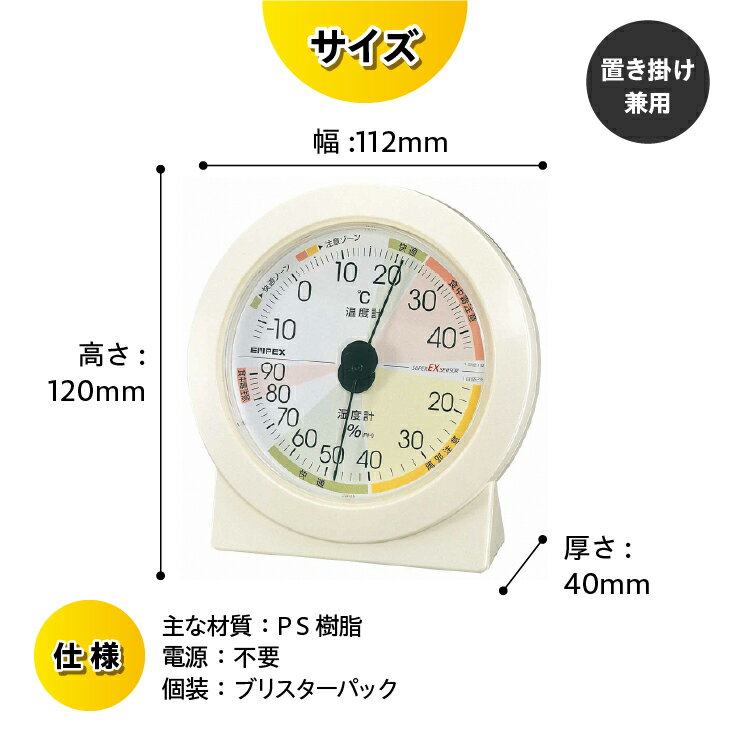 - 【ふるさと納税】 高精度UD温・湿度計 EX-2831 温度計 湿度計 本格派 感染症対策 健康管理 スーパーEXセンサ搭載 シンプル 大きな文字盤 見やすい アナログ式 電池不要 置き掛け兼用 計測器 みずさわ気象計器 エンペックス社 [AJ131]