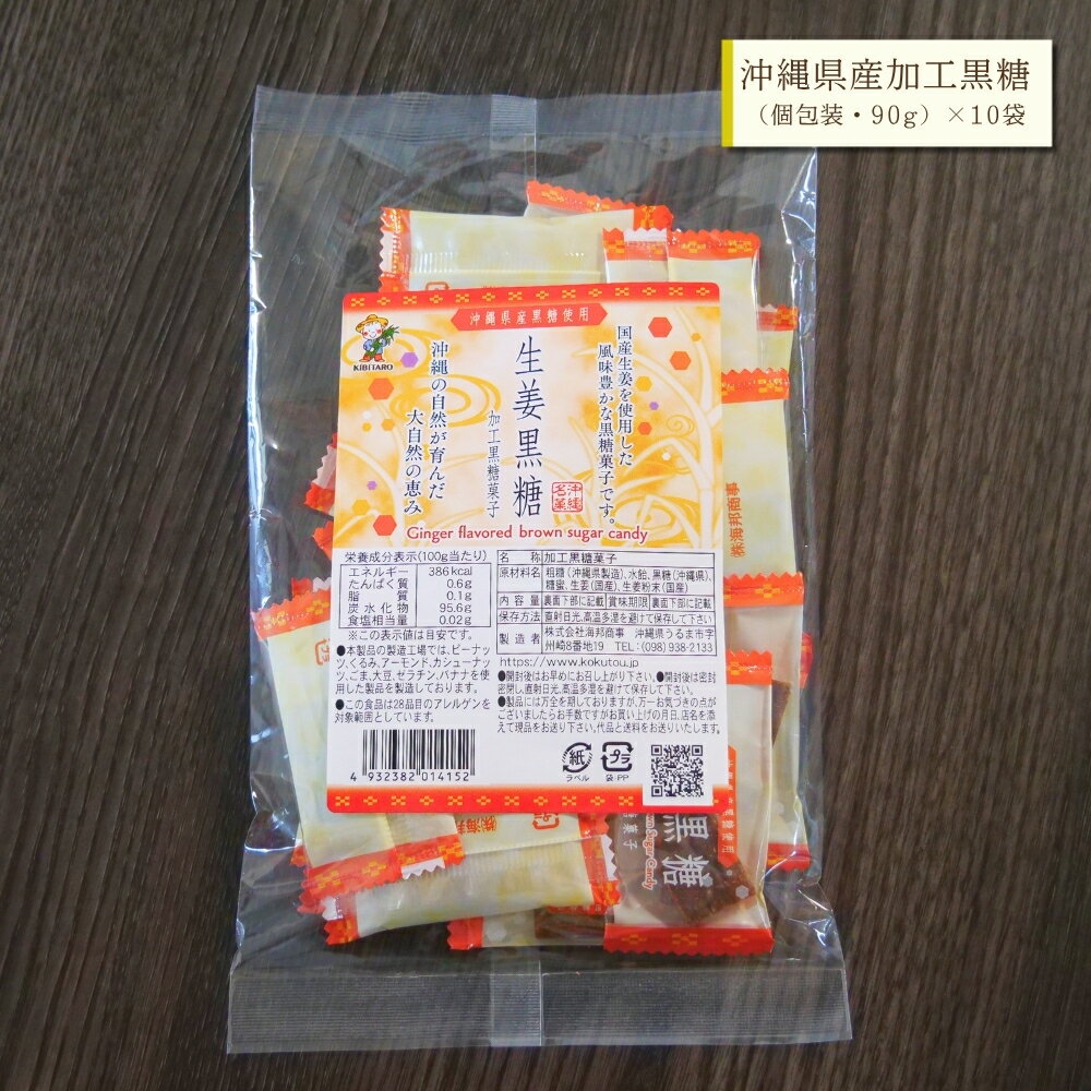 - 【ふるさと納税】沖縄の黒糖 生姜黒糖 10袋セット【国産生姜使用】】黒糖 黒砂糖 生姜 手軽 個包装 体に やさしい素朴 おやつ お土産 沖縄 うるま