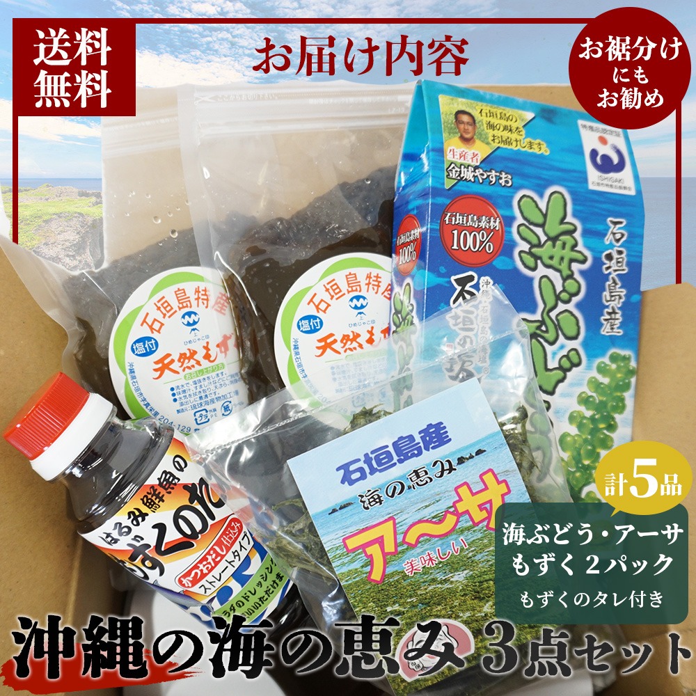 - 沖縄の海の恵み 3点セット(海ぶどう、天然もずく2パック、アーサ) もずくのタレ1本付 CK-13