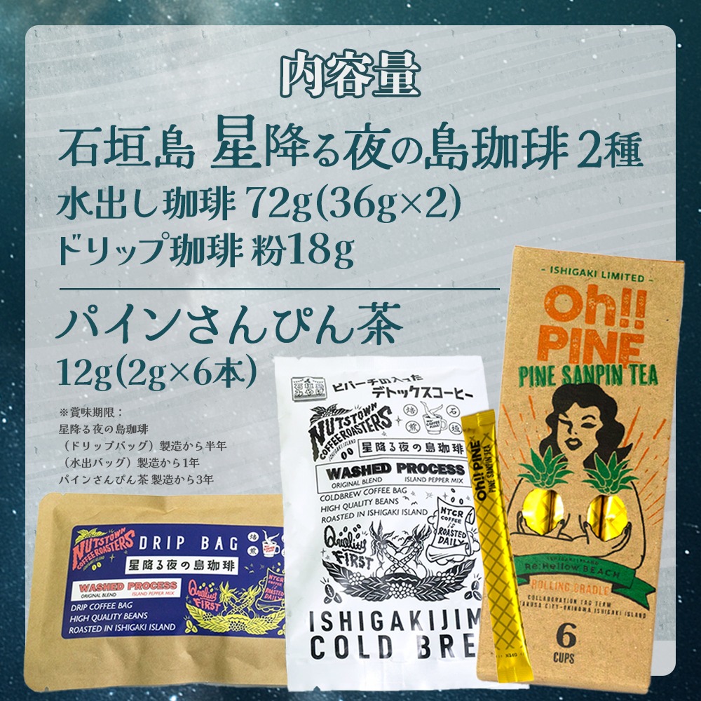 - 石垣島 星降る夜の島珈琲(2種)&パインさんぴん茶のセット CK-11