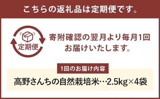 【通常パッケージ】【定期便12ヶ月】令和7年産 七城物語 高野さんちの 自然栽培米 (玄米) 10kg (2.5kg×4パック) 合計120kg お米 米 玄米 ヒノヒカリ