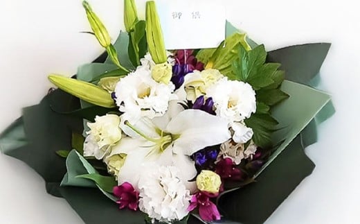【白+パープル系】 お供え用 生花 (仏花) アレンジ Lサイズ 生け花 花 フラワー お供え 仏壇 日用品 雑貨 九州 熊本県 熊本市 常温 冷蔵
