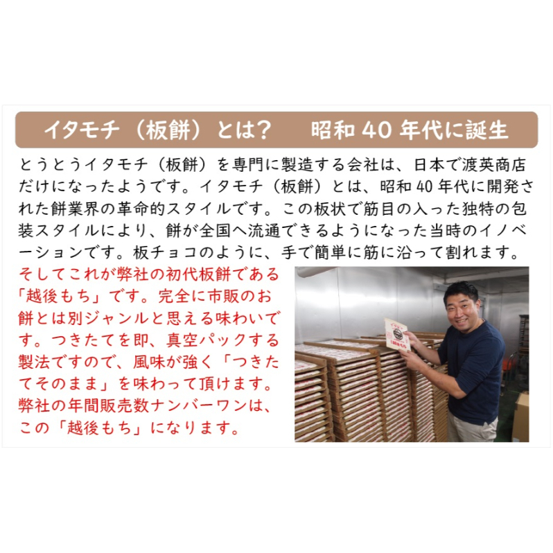 - イタモチ(越後もち)正規品 3枚セット 創業明治17年 渡英商店 謹製 幻 超ロングセラー レジェンド おいしい リピーター 個性 甘い 真空パック ボイル 殺菌 デンプン 正月