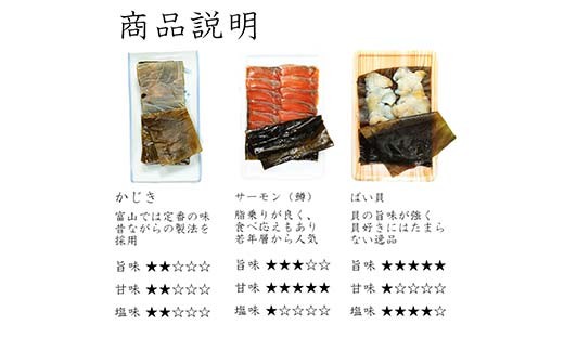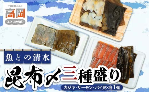 魚との清水(うおとの) 三種の昆布〆(3個入り)カジキ1個、サーモン1個、バイ貝1個 FAD-0742