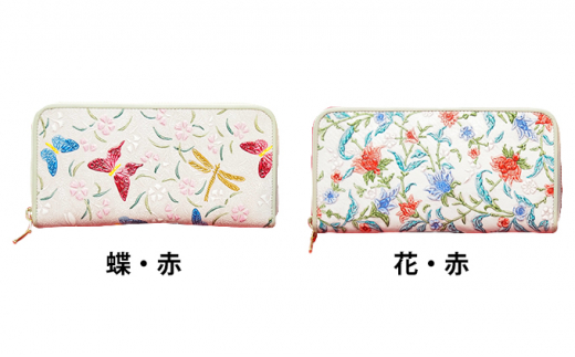 - [№5258-7108]0129姫路革細工 ラウンド札入「花・ブルー」