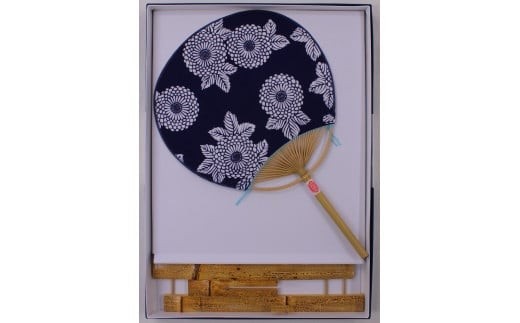 - 日永うちわ 伊勢木綿 菊づくし(中) 両用うちわ立て付