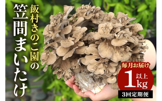 毎月【3回定期便 】飯村きのこ園の笠間まいたけ(1kg以上)