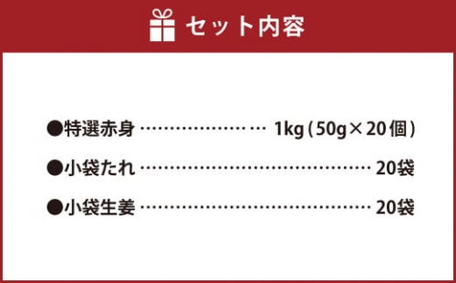 熊本 馬刺し 特選赤身 1kg (50g×20個) 馬肉 たれ 生姜