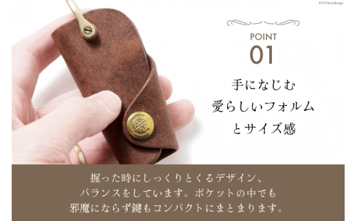 - ボタンフックキーケースL ブラウン [FUCHA 石川県 志賀町 CJ5005-c] Button Hook Key Case L イタリアンレザー プエブロレザー ハンドメイド 手縫い 革製品 本革