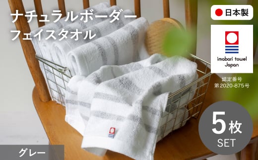 ナチュラルボーダー フェイスタオル(5枚・グレー) 【m100-17-B】【トクダ】