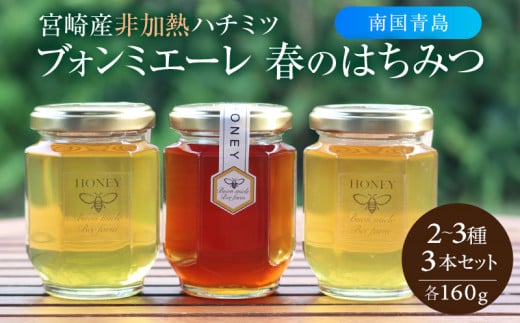 - 【最速便】【数量・期間限定】宮崎産非加熱ハチミツ(南国青島シリーズ)2~3種 ブォンミエーレ春のハチミツ160g×3本セット_M085-002_01