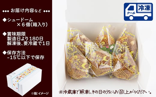 - シュードーム 6個 箱入り 30P5610 / 東北 秋田 大館 菓子 お菓子 シュークリーム 生クリーム カスタードクリーム クッキー アイス ギフト プレゼント 贈り物 母の日 父の日 敬老の日 誕生日 記念日 お祝い スイーツ お取り寄せ デザート 冷凍 自分への ご褒美 プチ贅沢 米粉