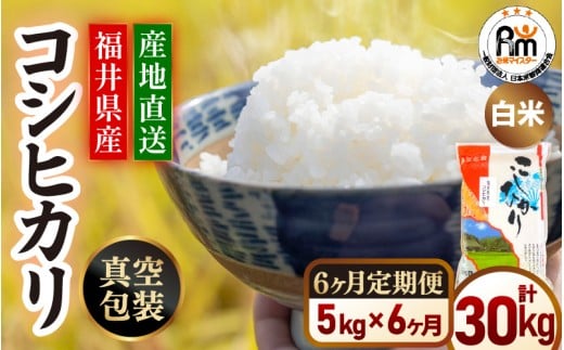 【新米】<真空包装> 定期便6ケ月 5kg×6回 令和7年産 米 コシヒカリ 精米 福井県産米 【白米 5キロ 30キロ こしひかり 真空パック お米 人気品種 産地直送 新生活 kome】 [e66-j001]