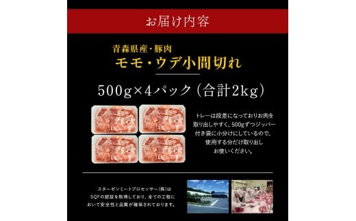 【青森県産・豚肉】モモ・ウデ小間切れ 2kg(500g×4パック)