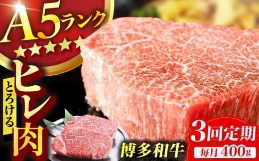 【3回定期便】博多和牛 A5ランク ヒレステーキ 200g×2枚 牛肉 ヒレ 定期便 A5 ランク フィレ お肉 ヘレ 人気 おすすめ 肉 和牛 国産牛 A5 ステーキ 広川町 / KRAZY×MEAT [AFCH002]