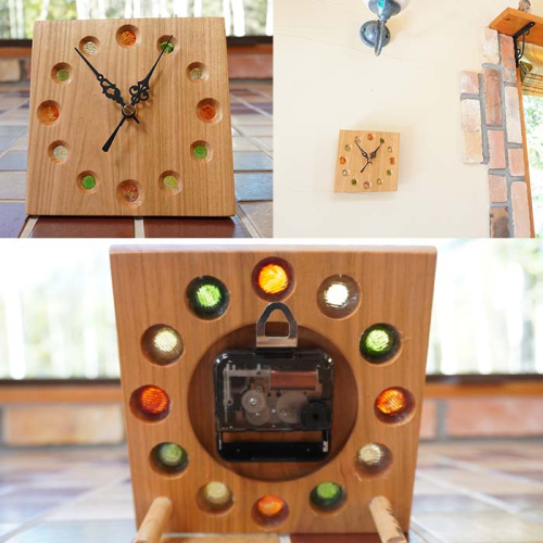 - 北海道 おはじき時計 (赤系おはじき) 壁掛け時計 掛け時計 置き時計 兼用 サクラ材 タモ材 ブラックウォールナット材 天然木 木製 雑貨 インテリア おしゃれ ナチュラル 職人 手作り 送料無料 十勝 士幌町【B01】