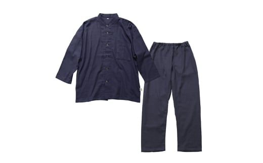 - moun 3重ガーゼ メンズパジャマ 綿100% 日本製 Lサイズ(ネイビー)