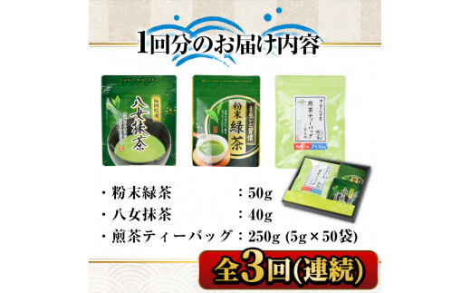 - 【ksg1374】<定期便・全3回(連続)>福岡銘茶八女茶 急須要らずのお手軽セット(便利なチャック付)(総量1.02kg)【マル五】