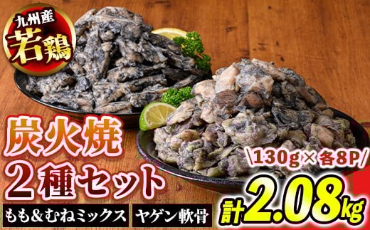 - s678 【E】九州産若鶏・炭火焼2種セット《もも&むね炭火焼・ヤゲン軟骨炭火焼》(合計2.08kg・130g×各8P) 鹿児島 国産 九州産 鶏肉 若鶏 モモ肉 ムネ肉 なんこつ 軟骨 ミックス 炭火焼き おかず 惣菜 おつまみ 【江夏商事】
