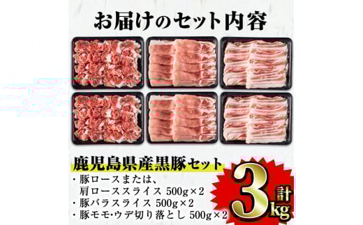 - 鹿児島県産黒豚セット 合計3kg 国産 黒豚 詰め合わせ 【Rana】A411-v02