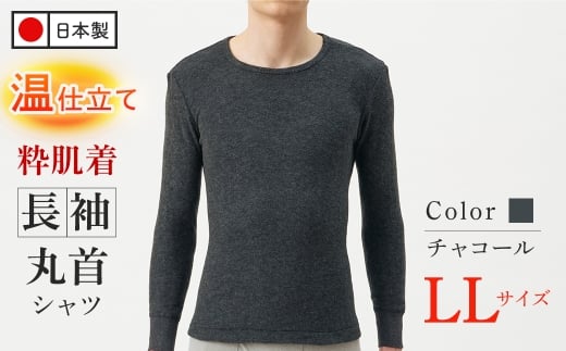 - <期間限定>粋肌着温仕立て長袖丸首シャツ(チャコール、LLサイズ・1枚) 【m84-04-LL-B】【アズ】