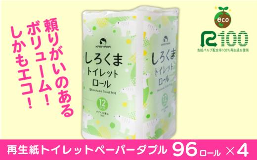 【3ヵ月に1回定期便・計4回配送】 【ふるさと納税】しろくまトイレットペーパー ダブル 96ロール 定期便 4回 ふるさと納税 無香料 まとめ買い 大容量 日用品 生活必需品 消耗品 備蓄 再生紙 人気 おすすめ ランキング 送料無料 岩手県 一関市
