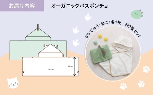 - オーガニックコットンミニバスポンチョ(かいじゅう/ねこ・各1点) 【m100-07-C】【トクダ】