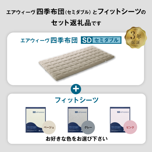 エアウィーヴ 四季布団 セミダブル × フィットシーツ セット 選べるカラー ( ベージュ・グレー・ピンク ) マットレス マットレスパッド マットカバー セット