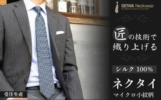 【受注生産】匠の技術で織り上げるシルク100%のマイクロ小紋柄ネクタイ(ネイビー×グリーン)| ネクタイ シルク 柄 高級 ビジネス フォーマル 贈答用 送料無料 東京 八王子