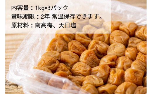 - ※ギフト対応※【常温保管可能 】ミネラル豊かな天日塩だけで漬けた無添加梅干し3kg/南高梅 C-502A