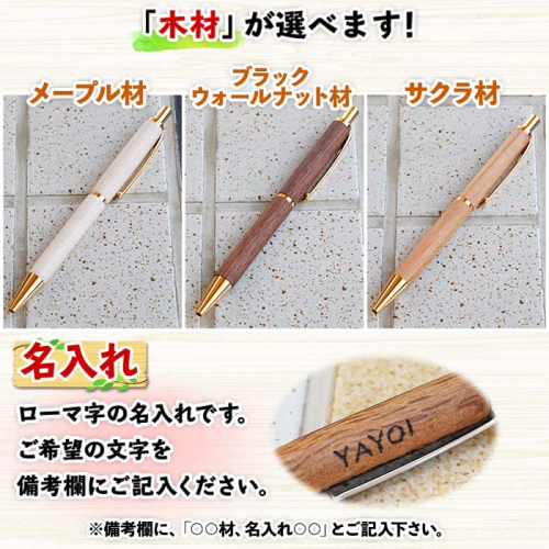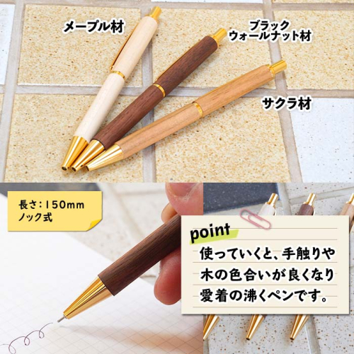 北海道 ボールペン 名入れ可 木製文具 木軸 ノック式 筆記具 文房具 文具 筆記用具 メープル材 ブラックウォールナット材 サクラ材 天然木 木製 雑貨 おしゃれ ナチュラル 職人 手作り 送料無料 十勝 士幌町【B04】