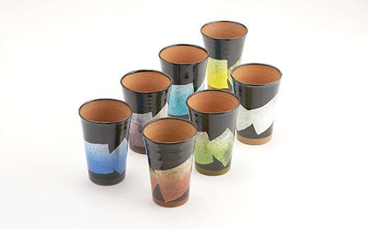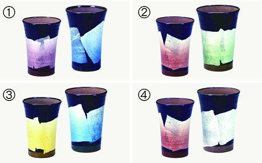- 九谷焼 九谷和窯泡多長ビアカップ 銀彩 ペア(250cc黄色・350cc水色)