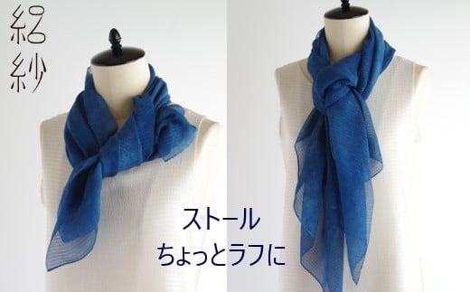- ストール 絽紗 はじめての藍染 シルク100% 色の重なりを楽しむ藍染ストール レディース | おしゃれ シンプル マフラー 春夏 春 夏 プレゼント ギフト 母の日 新潟県 五泉市 株式会社 横正機業場