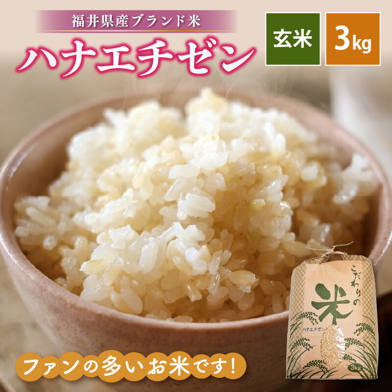 - 【ふるさと納税】【新米】 令和7年産 ハナエチゼン 3kg 福井県産【玄米】【お米 はなえちぜん 華越前 3キロ】 [e30-a086]