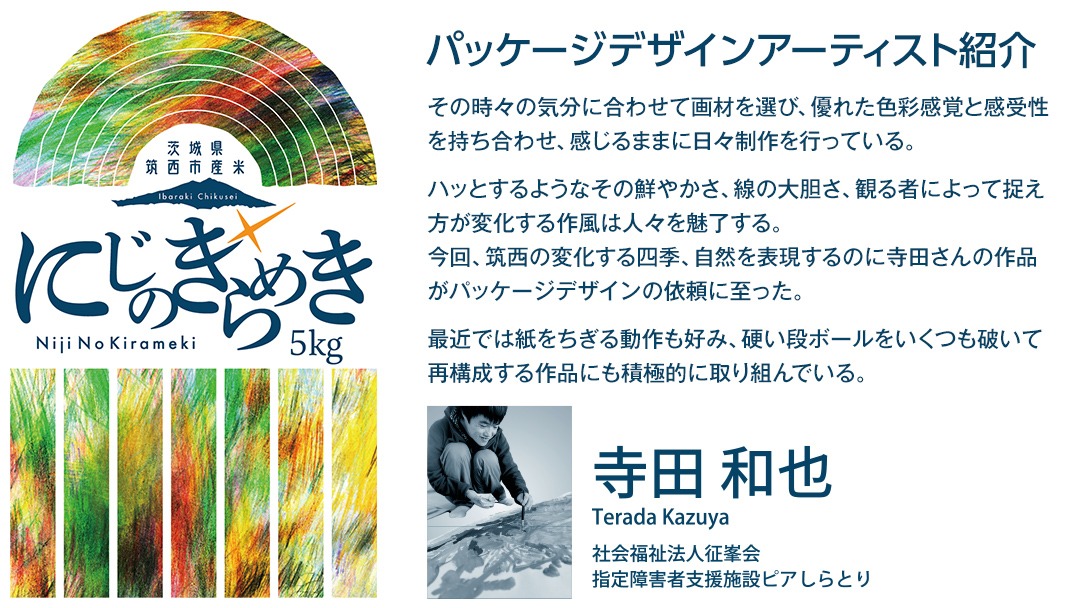 - 【 定期便 6ヶ月 】 茨城県 筑西市産 にじのきらめき 10kg ( 障がい者アート パッケージ ) ( 5kg × 2袋 ) 令和7年産 新米 精米 米 お米 コメ 白米 茨城県 筑西市 三ツ星 マイスター [CH025ci]