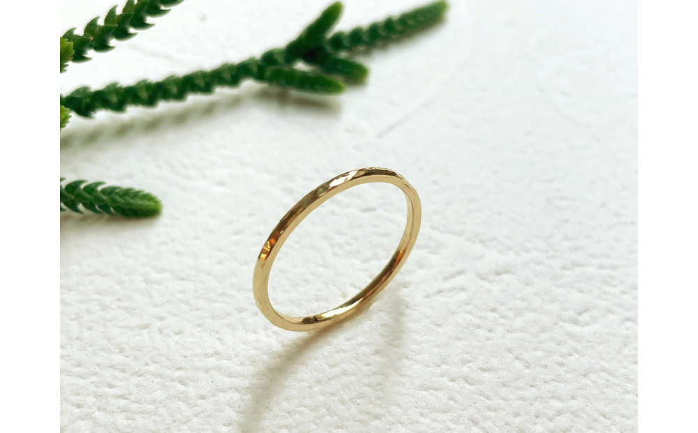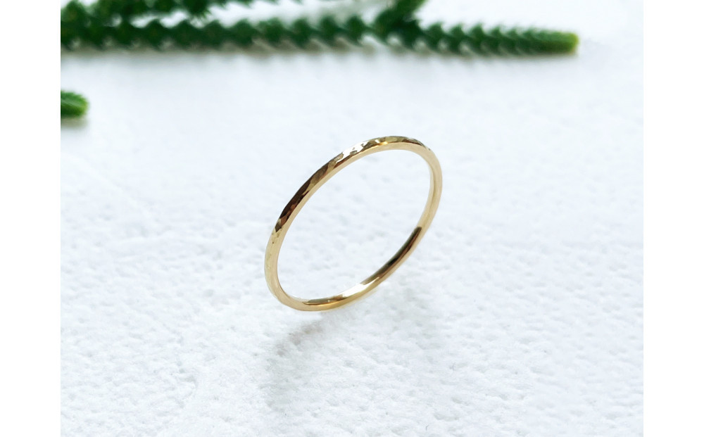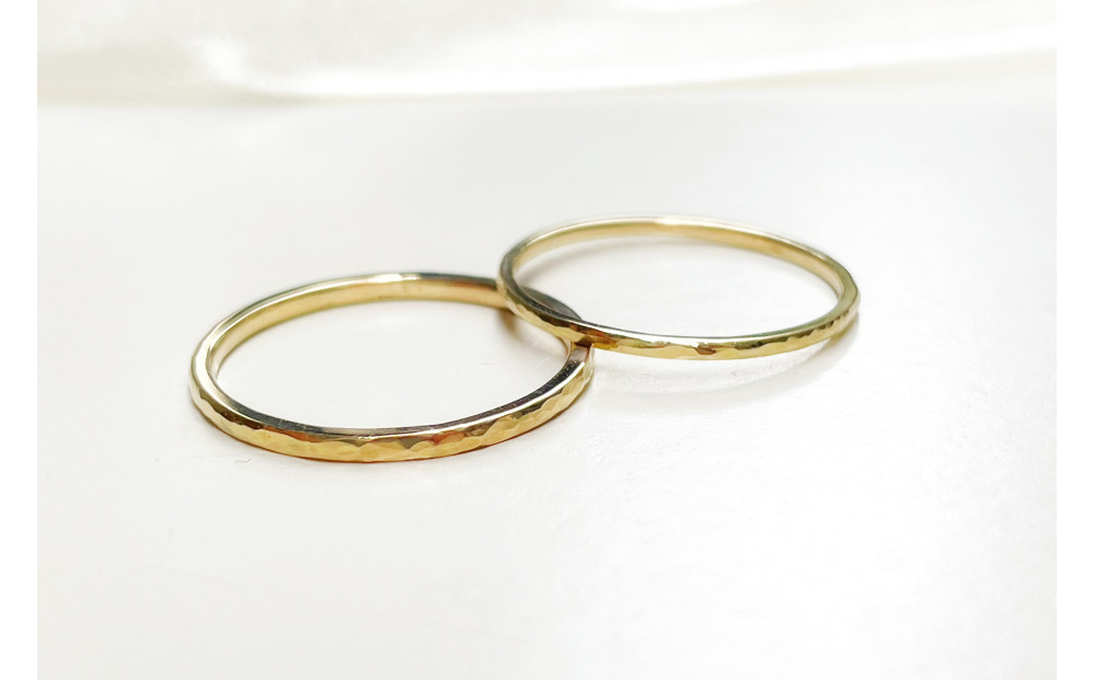 【K18 ペアリング】丸つち目 細&厚リング(ハンドメイド)- ギフト包装付き - 232238_WW138