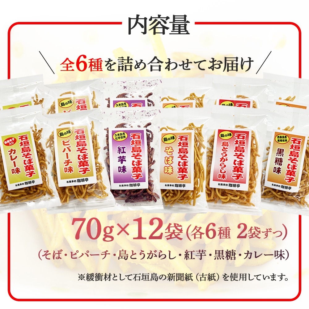 石垣島そば菓子コンプリート全6種×2袋ずつ (そば、ピパーチ、島とうがらし、紅芋、黒糖、カレー味) CK-07