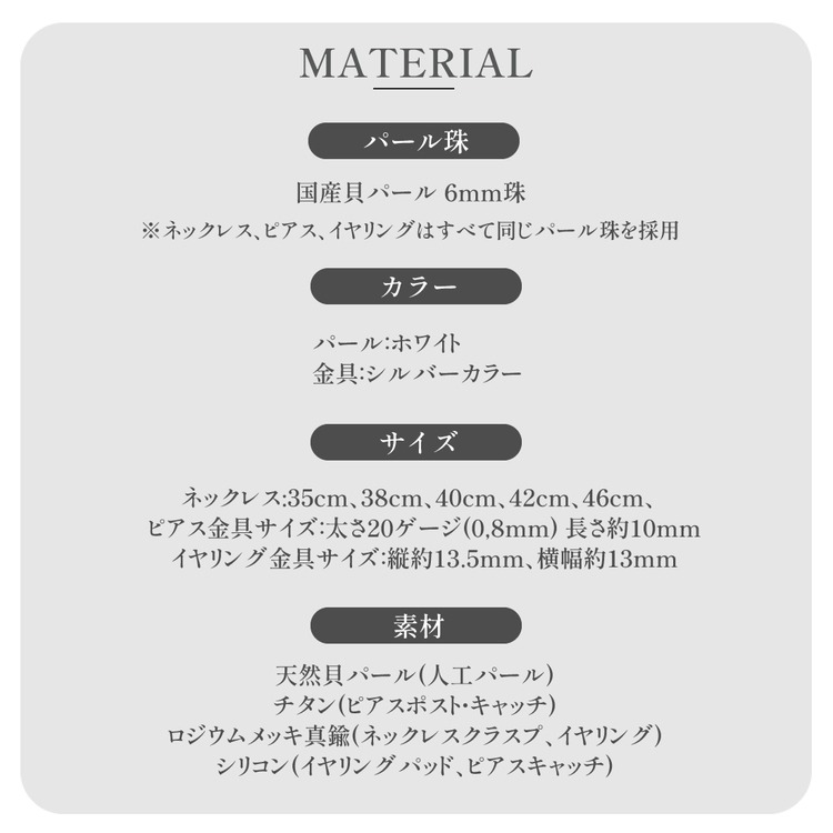 - 6mm貝パールネックレス 選べるサイズ・イヤリングピアス