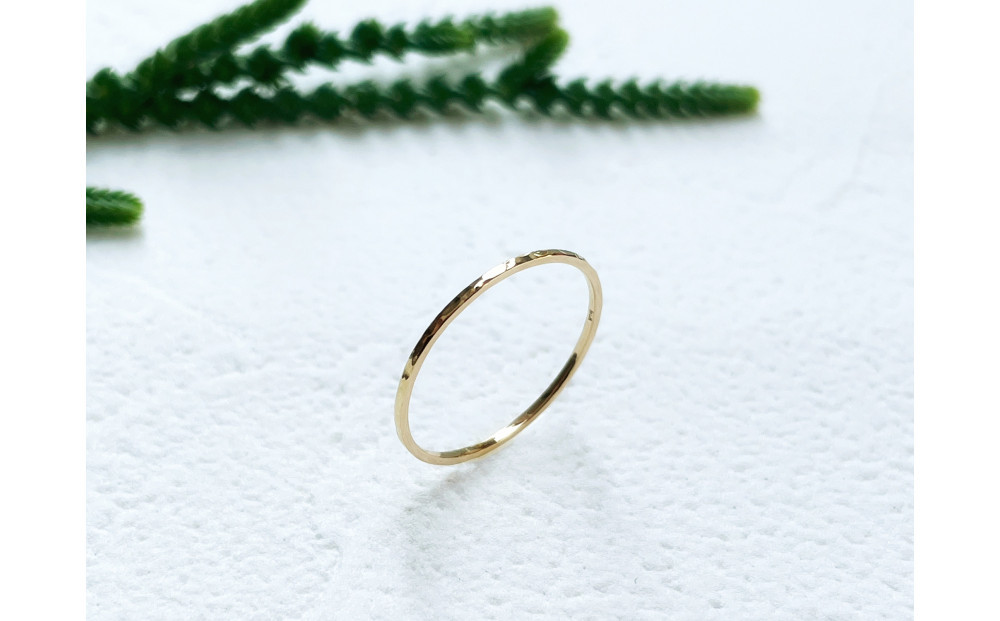 【K18 ペアリング】丸つち目 極細&細リング(ハンドメイド)- ギフト包装付き - 232238_WW139