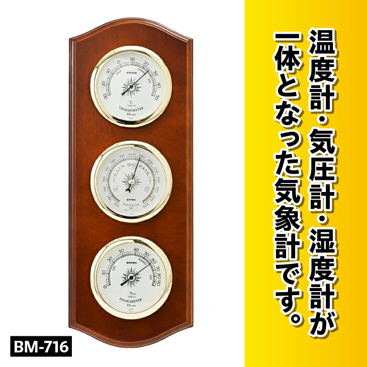 【ふるさと納税】 【10月1日より価格改定】 ウェザーガイド気象計 BM-716 温度計 湿度計 気圧計 計測器 感染症対策 気象病対策 天然木 クラシカル インテリア アナログ式 電池不要 壁掛け用 みずさわ気象計器 エンペックス [AJ055]