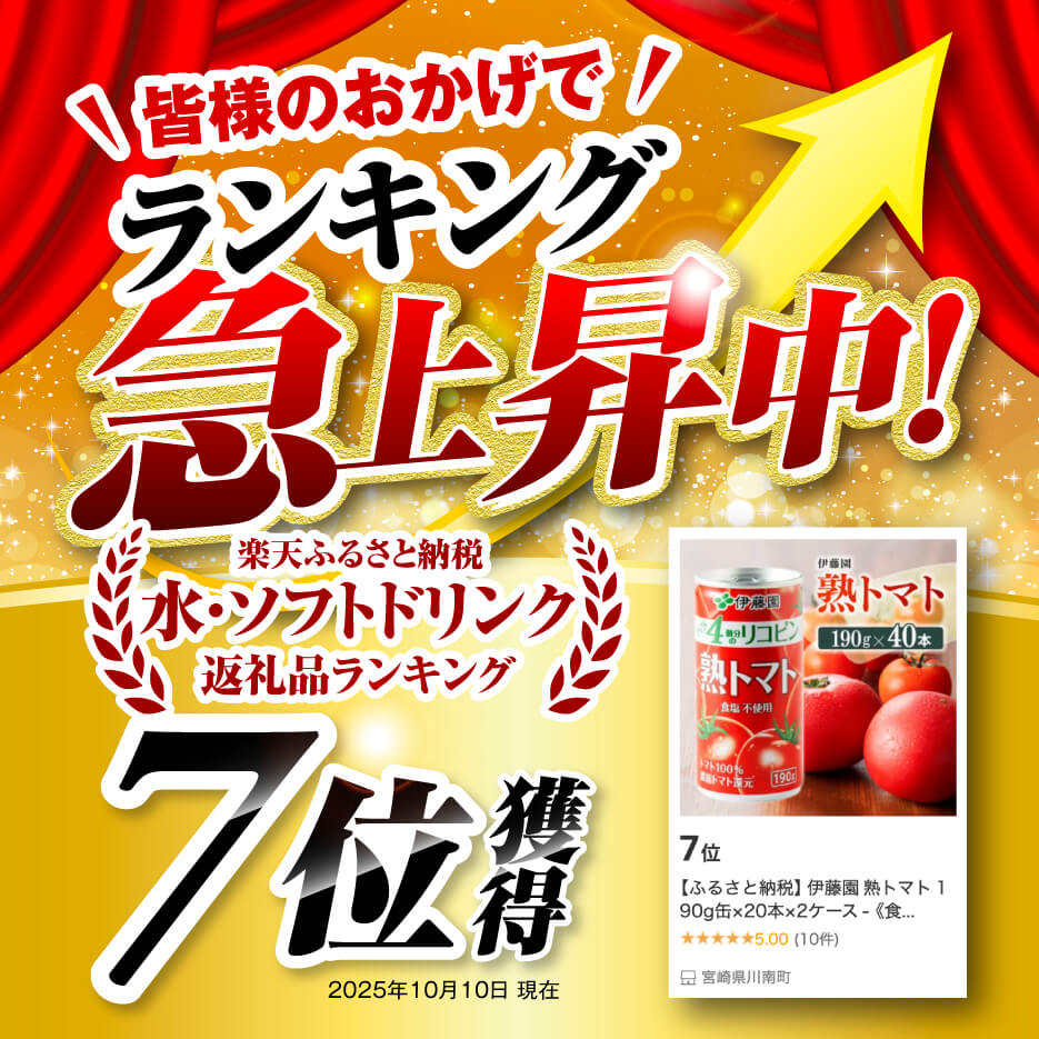 - 【ふるさと納税】 伊藤園 熟トマト 190g缶×20本×2ケース - 《食塩不使用》 トマト100% リコピン とまと 長期保存 備蓄 備え 野菜飲料 野菜ジュース お取り寄せ お届け 飲料 飲料類 のみもの セット 野菜生活 朝食 おやつ 差し入れ 送料無料 E7340