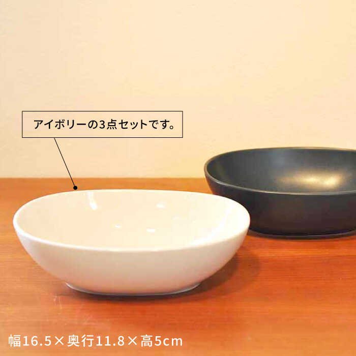 - 【ふるさと納税】【波佐見焼】h+FIN ボウル アイボリー 3点セット 食器 皿 【堀江陶器】 [JD175]