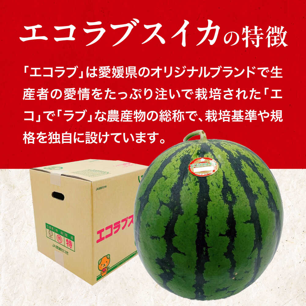 - 【ふるさと納税】【先行予約】【2026年5月下旬から順次発送】愛媛県産 エコラブスイカ 特1玉 愛媛県大洲市/株式会社フジ アグリフーズ[AGBA017] スイカ すいか 西瓜 くだもの 果物 フルーツ 新鮮 愛媛県産 大洲市産 産地直送 おすすめ 人気 お取り寄せ 送料無料 贈答 ギフト