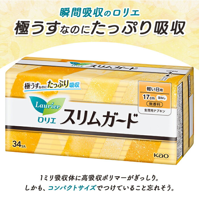 - 【ふるさと納税】<ロリエ スリムガード 軽い日用 計136枚(34枚入り×4個)> ※翌月末迄に順次出荷します。 花王 Kao 生理用品 ナプキン 羽なし 羽無し 17cm サニタリー 日用品 消耗品 生活用品 生活雑貨 防災グッズ 備蓄 愛媛県 西条市 【常温】