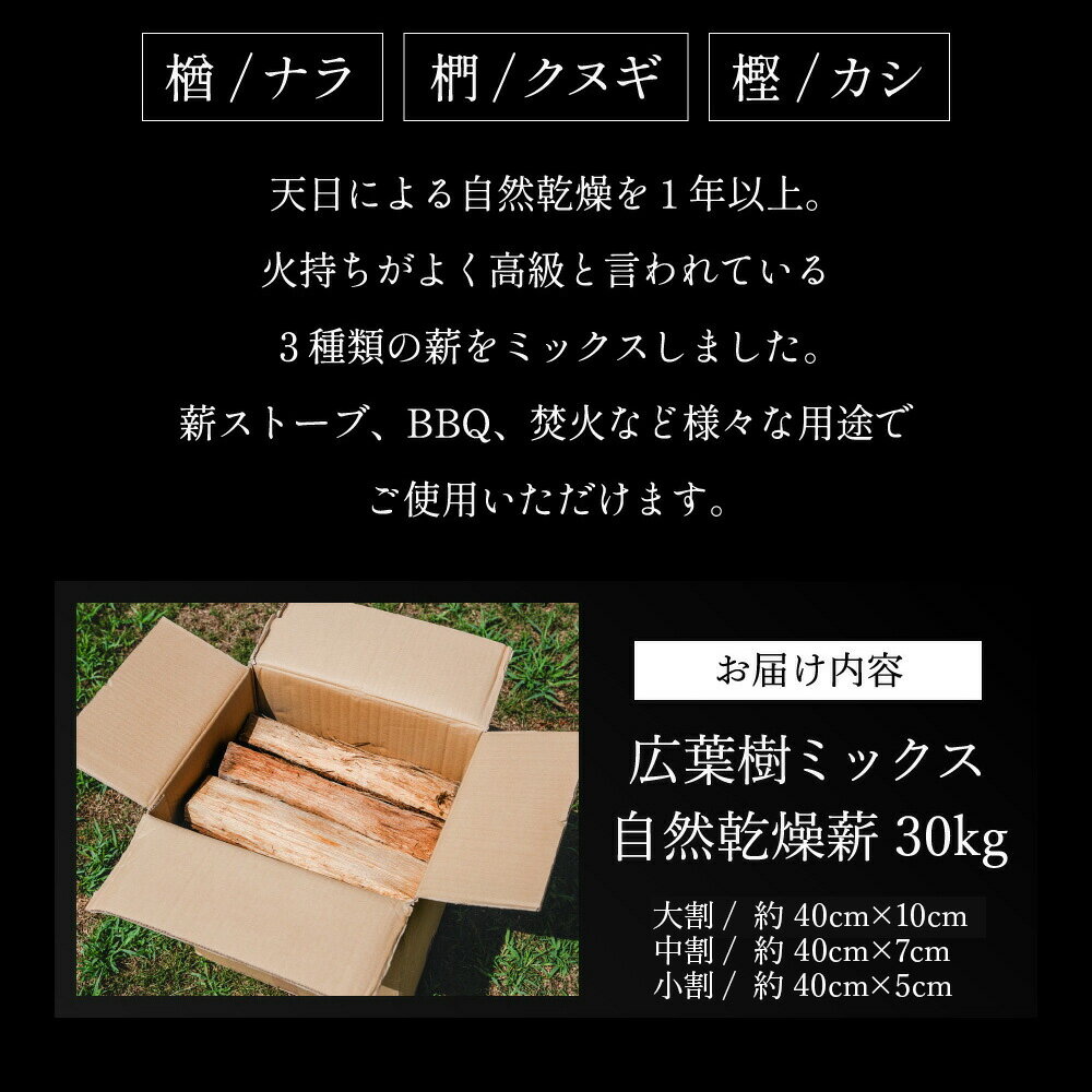 薪 30kg 40cm クヌギ・ナラ・カシ 高級広葉樹3種のミックス / 椚 くぬぎ 楢 なら 樫 かし 木材 薪ストーブ ストーブ 薪割り 割り薪 まき 乾燥 済 アウトドア キャンプ ファイヤー 焚き火 焚火 森林 林業 木 サウナ 送料無料
